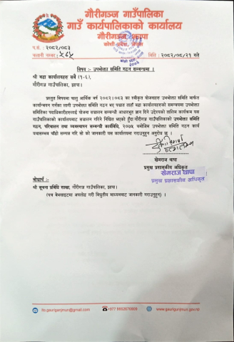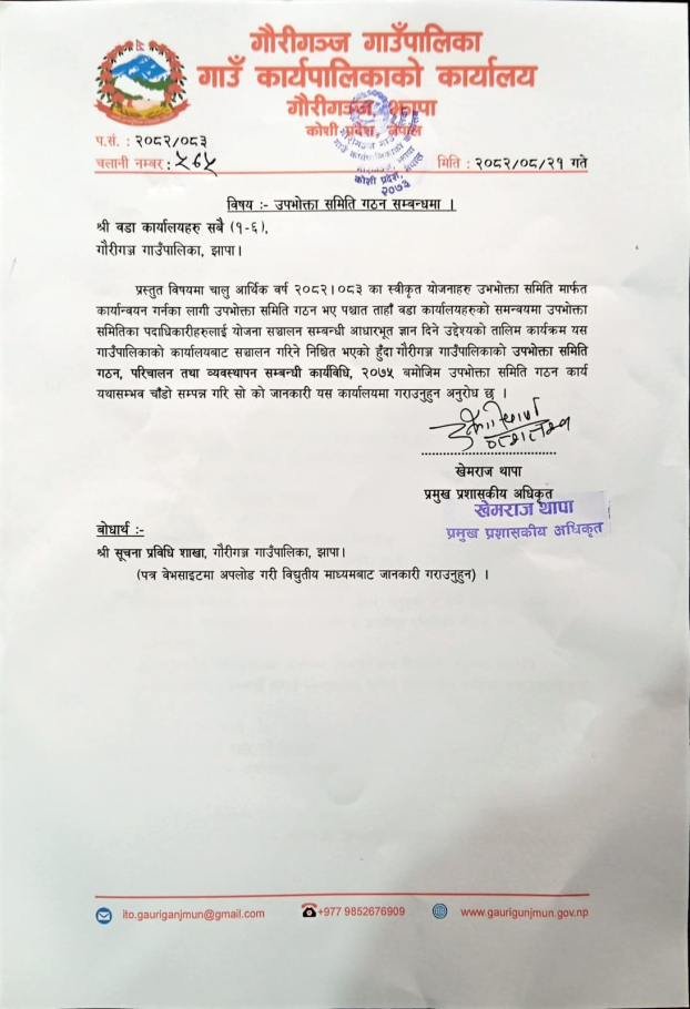 (२०८२/०८/२१) उपभोक्ता समिति गठन सम्बन्धमा ।
