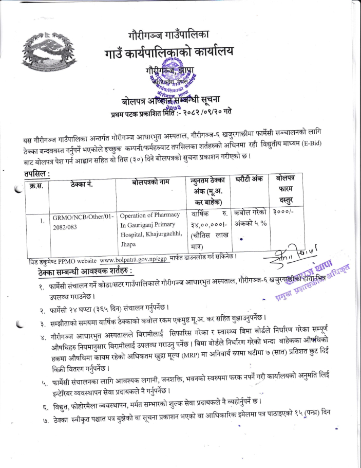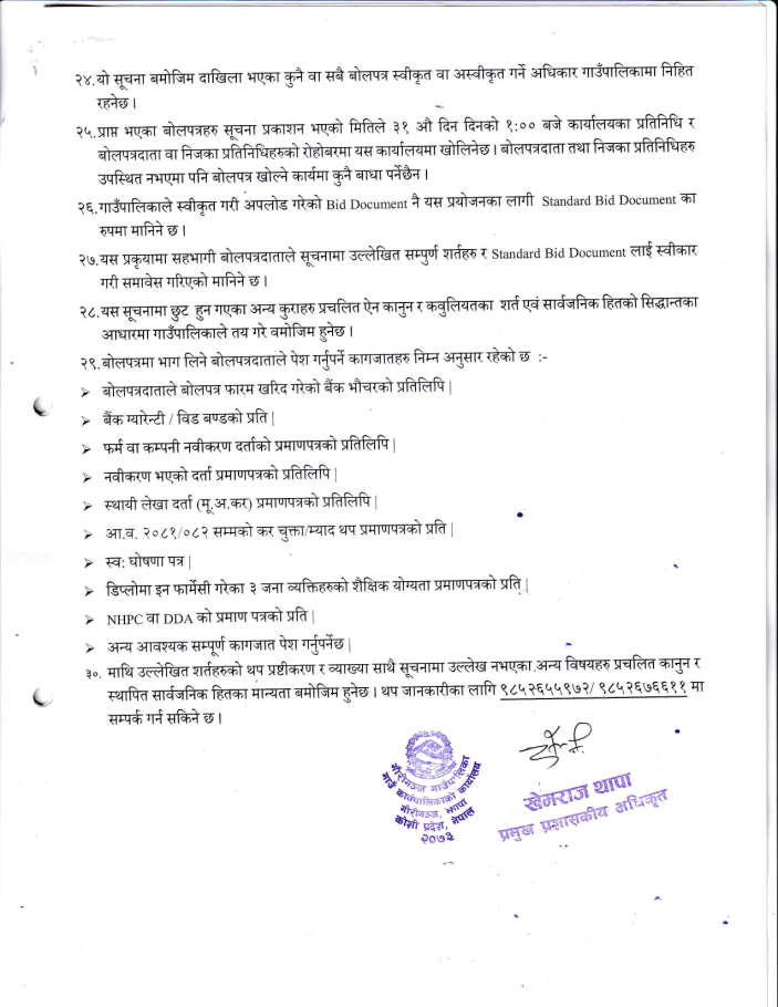 (२०८२/०९/२०) बोलपत्र आव्हान सम्बन्धी सूचना ।