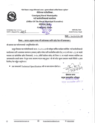 » (२०८२/०९/२०) लागत अनुमान तयार गर्ने प्रयोजनका लागि दररेट पेश गर्ने सम्बन्धमा ।