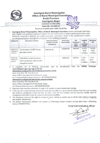 (२०८२/१०/०६) ठेक्का आव्हान सम्बन्धी सूचना ।
