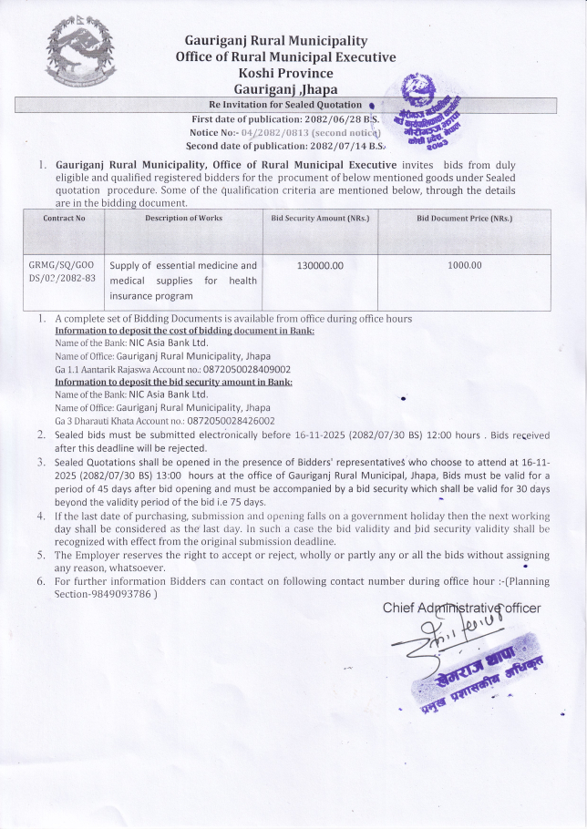 » (२०८२।०७।१४) पुन: शिलबन्दि दरभाउ पत्र सम्बन्धि सूचना ।
