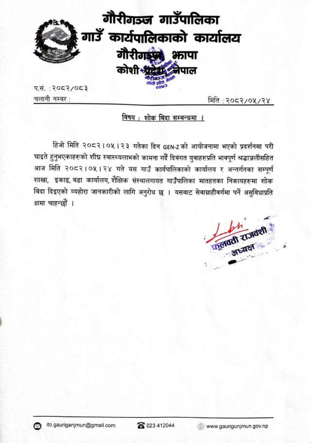 (२०८२/०५/२४) शोक विदा सम्बन्धमा ।