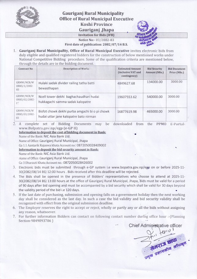 (२०८२/०७/१४) बोलपत्र आव्हान सम्बन्धि सूचना ।