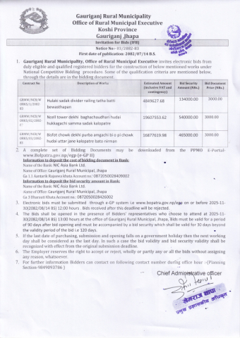» (२०८२/०७/१४) बोलपत्र आव्हान सम्बन्धि सूचना ।