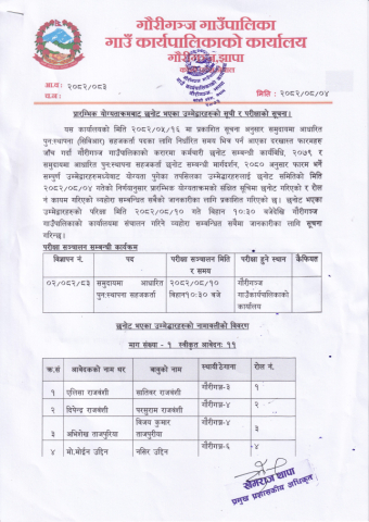 » (२०८२/०८/०४) प्रारम्भिक योग्यताक्रमबाट छनोट भएका उम्मेद्वारहरुको सूची र परीक्षाको सूचना ।