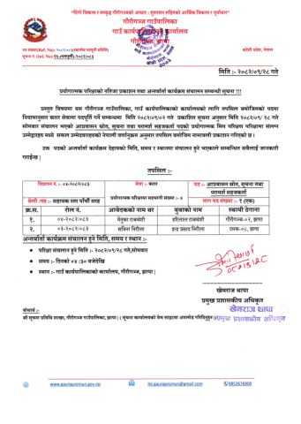 (२०८२/०९/२८) प्रयोगात्मक परिक्षाको नतिजा प्रकाशन तथा अन्तर्वार्ता कार्यक्रम सञ्चालन सम्बन्धी सूचना ।