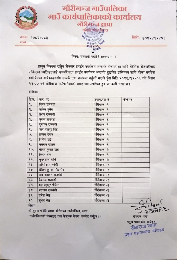 (२०८२/१२/०३) सहभागी भइदिने सम्बन्धी सूचना।