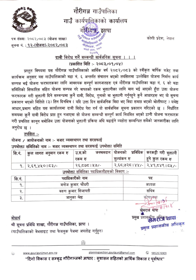 (२०८३/०१/०४) दाबी बिरोध गर्ने सम्बन्धी सार्वजनिक सूचना ।