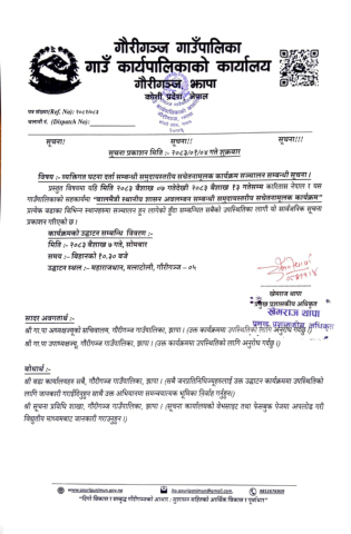 (२०८३/०१/०४) व्यक्तिगत घटना दर्ता सम्बन्धी समुदायस्तरीय सचेतनामूलक कार्यक्रम सञ्चालन सम्बन्धी सूचना ।
